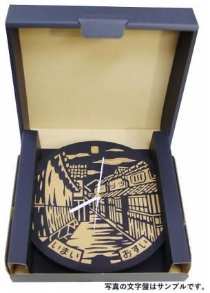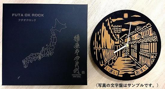 商品名称:フタオクロック/FUTA OK ROCK(木製掛け時計になります) 商品素材:MDF合板(松の木)、針、ムーブメント(日本製) 商品説明:マンホールデザインが文字盤に彫刻してあります。 サイズ:直径250mm×厚み6mm 重量約200gのスリム設計 ※箱に書家もーちゃん直筆の自治体名が彫刻されています。